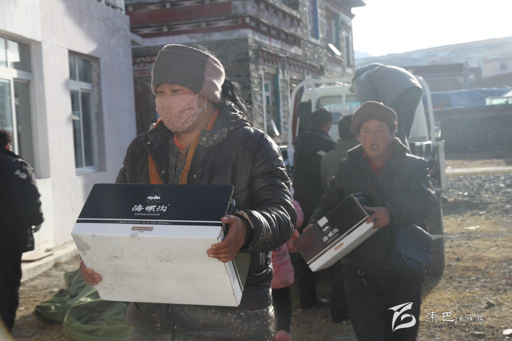 途中見(jiàn)到色曲卡、塔公、各日瑪3村民房均有不同程度損害,但尚未發(fā)現(xiàn)垮塌。在塔公鄉(xiāng)黨委政府的接應(yīng)和協(xié)助下,早上8點(diǎn)30分,50頂帳篷已全部發(fā)放到色曲卡村,50箱方便面、10箱牛奶、以及70件四川康定機(jī)場(chǎng)集團(tuán)旗下海螺溝冰川水業(yè)生產(chǎn)的礦泉水等物品也分別發(fā)放到了塔公、各日瑪兩村。
