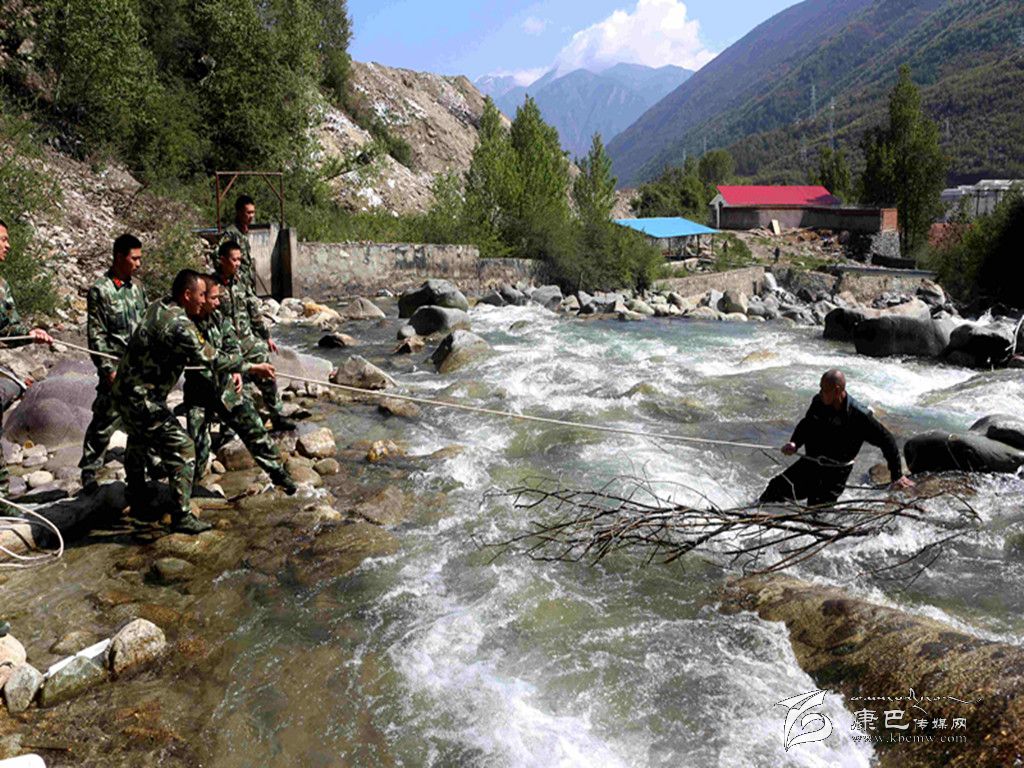 小尚一邊安慰受困男子,一邊用對講機向中隊值班員報告,請求援助。5分鐘后,中隊值班員帶領幾名班長骨干攜帶救援裝備緊急趕至岸邊,展開救援。五月的康定正值雨季,河水湍急、冰冷刺骨,加之河床亂石林立,官兵涉河接近受困男子困難。負責一線救援的龔財嵐排長決定利用河中大石采取短距離定向移動的方法,拋出攀登繩,綁在老鄉(xiāng)腰上確保老鄉(xiāng)不被河水沖走。經(jīng)過近10分鐘緊急營救,受困老鄉(xiāng)被成功營救上岸。由于老鄉(xiāng)渾身冰涼且手上有傷,救援官兵決定將老鄉(xiāng)攙扶至營區(qū),由衛(wèi)生員對身體進行簡單檢查,并對其傷口進行處理包扎。