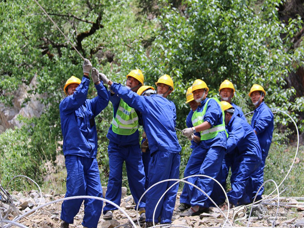 “辛苦”二字同樣印在工程管理者的工作中。手握對(duì)講機(jī)、身穿工裝的工程項(xiàng)目負(fù)責(zé)人龍森,此刻正頂著烈日在工地對(duì)一位工人叮囑施工事項(xiàng)。龍森是甘孜電力建設(shè)有限公司的工程技術(shù)人員,他對(duì)工程管理非常嚴(yán)格,如果工程進(jìn)度稍慢點(diǎn),他就會(huì)焦急萬(wàn)分??擅棵靠匆?jiàn)工人們頂著烈日、冒著風(fēng)雨加班加點(diǎn)趕工程進(jìn)度時(shí),龍森的心里也特別不是滋味。對(duì)這項(xiàng)工程的不易龍森深有體會(huì)。架桿初期,有些路段山坡土質(zhì)松軟,一遇到下雨就容易滑坡塌方,為了不影響工程進(jìn)度,龍森和工友們常常要一邊做“修路工”的工作一邊做“架桿工”的工作。龍森說(shuō):“最苦的是,這里有些路段車(chē)輛根本無(wú)法進(jìn)入,一根電桿重1.2噸,要靠十多名工人用繩索和木頭抬進(jìn)工地。德差鄉(xiāng)距離縣上有170多公里,單程就要4小時(shí),工程緊的時(shí)候一周要往返縣上兩三趟。還記得有一次車(chē)胎在海拔近5000米的呷布科山上爆了,山上手機(jī)沒(méi)有信號(hào),得不到救援,餓了我們就在山上吃點(diǎn)自帶的干糧,等了近半天才等到一位騎摩托車(chē)的老鄉(xiāng)路過(guò),回到休息地的時(shí)候已經(jīng)是半夜兩點(diǎn)多了。”說(shuō)到這里,龍森無(wú)奈地?fù)u了搖頭。世上無(wú)難事,只怕有心人。龍森說(shuō),這段路線的電桿已經(jīng)全部立起來(lái)了,現(xiàn)在只剩下架線的工作。一定要搶在月底之前為這兩個(gè)村通上電。