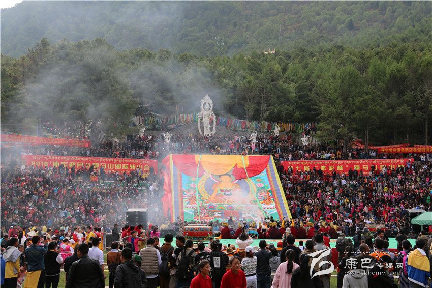 上午九時(shí)許,在陣陣法號(hào)和僧侶的誦經(jīng)聲中,莊嚴(yán)、隆重的“四月八”曬佛儀式拉開(kāi)了跑馬山國(guó)際轉(zhuǎn)山會(huì)系列活動(dòng)的序幕。在人們的熱切期待中,釋迦牟尼的巨型唐卡畫(huà)緩緩展現(xiàn)在人們眼前。此時(shí),來(lái)自不同省份和地區(qū)以及外國(guó)友人,早已將數(shù)碼相機(jī)或手機(jī)準(zhǔn)備好,拍下美好的瞬間。來(lái)自河南的游客黃先生說(shuō):“能參加到康定‘四月八’轉(zhuǎn)山會(huì),真是太有福了,這是多年的夢(mèng)想,今天終于實(shí)現(xiàn)了。特別看到這幅釋迦牟尼唐卡像,真是壯觀,很震撼。”同樣,來(lái)自英國(guó)游客也被濃烈的儀式氣氛所感染,手中的相機(jī)就沒(méi)停下過(guò),并用流利中文說(shuō):“節(jié)日舉辦得很好,不僅山美、水美,且民族文化底蘊(yùn)無(wú)窮,真是太棒了。”