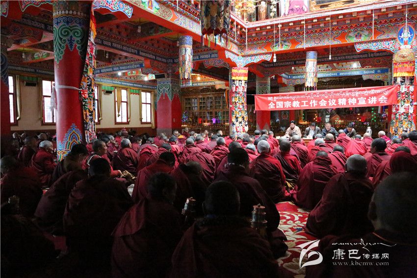 “中央和省委非常重視支持藏區(qū)經(jīng)濟(jì)社會(huì)發(fā)展和長(zhǎng)治久安、非常關(guān)心關(guān)愛(ài)寺廟建設(shè)及其僧尼生活,州委更是在抓好發(fā)展、民生、穩(wěn)定‘三件大事’上下足了功夫,在惠寺惠僧上使足了干勁。‘十二五’以來(lái),州上全力爭(zhēng)取落實(shí)了中央寺廟水、電、路等基礎(chǔ)設(shè)施建設(shè)資金1億多元,省級(jí)和州安排危房維修和專項(xiàng)資金1500余萬(wàn)元, 2014年還專項(xiàng)為五明佛學(xué)院安排資金100萬(wàn)元;各縣財(cái)政投入寺廟基礎(chǔ)設(shè)施資金共1.1億元,在267座寺廟開(kāi)展了路、水、電、通訊、廣播電視‘五通’及危房建設(shè)。這些真金白銀的投入,帶來(lái)的是全州藏傳佛教寺廟基礎(chǔ)條件的大幅改善。面對(duì)寺廟和僧尼學(xué)習(xí)生活條件的日臻完善,難道我們不知道恩從何來(lái)嗎?‘十二五’以來(lái),全州累計(jì)保障困難僧尼14969人,政府資助困難僧尼參加城鎮(zhèn)醫(yī)保、新農(nóng)合39014人,納入基本醫(yī)療保險(xiǎn)38989人、養(yǎng)老保險(xiǎn)12697人,完成52459名僧尼健康信息調(diào)查,3138名宗教場(chǎng)所負(fù)責(zé)人及成員享受工作補(bǔ)貼。這些看得見(jiàn)、摸得著的實(shí)惠,帶來(lái)的是廣大僧尼后顧之憂的迅即消除。面對(duì)這些無(wú)微不至的關(guān)愛(ài),難道我們不知道恩向誰(shuí)報(bào)嗎?今年是‘十三五’的開(kāi)局之年,州委十屆八次全會(huì)確立了‘一個(gè)目標(biāo)、兩個(gè)關(guān)鍵、三件大事、六大戰(zhàn)略’總體工作格局,提出了全面建設(shè)美麗生態(tài)和諧小康甘孜的宏偉目標(biāo),我們廣大僧尼也將與全州農(nóng)牧民群眾一起精準(zhǔn)脫貧、致富奔康,住上好房子、過(guò)上好日子、養(yǎng)成好習(xí)慣、形成好風(fēng)氣。面對(duì)來(lái)之不易的幸福生活和更加美好的發(fā)展前景,難道我們不知道在感恩中奮進(jìn)、在奮進(jìn)中感恩嗎?……”以小見(jiàn)大的宣講、以事說(shuō)理的宣傳、以情感人的對(duì)話,使得宣講內(nèi)容都成了僧尼們愛(ài)聽(tīng)的大白話、通俗話和貼心話。