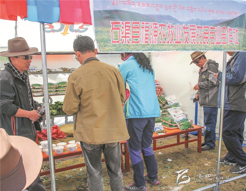 8月3日是石渠縣帳篷節(jié)的最后一天,清晨的陽光透過炊煙傾灑在草原千余頂帳篷上,40多歲的藏族漢子嘎戎從生活區(qū)的帳篷里出來,走向不遠(yuǎn)的太陽部落帳篷商貿(mào)城集市。那里安扎著400多頂帳篷,有商戶370家,周邊還有50多個(gè)流動(dòng)的小商販。嘎戎所在的石渠縣福源農(nóng)牧業(yè)發(fā)展農(nóng)民合作社就是其中的一家參展商。從帳篷節(jié)開始,嘎戎就和其它5個(gè)人輪流值守這個(gè)他們倍加珍惜的展位,那是他們合作社自今年4月份成立至今第一次在如此重大的場合中露面,經(jīng)過這次檢驗(yàn),他們對自己的產(chǎn)品更加有信心。駐真達(dá)村第一書記祝修濤告訴記者,短短一個(gè)星期,合作社展售的糌粑、人參果、奶渣近2000斤,銷售額達(dá)4萬多元。這個(gè)農(nóng)民專業(yè)合作社以扶貧為己任,從建設(shè)種植基地到水磨房加工投入了200多萬元,全村50戶村民參與,合作社將原料統(tǒng)一發(fā)給村民加工,再統(tǒng)一收起來,統(tǒng)一包裝銷售。祝修濤說,社里的產(chǎn)品剛開始只是在當(dāng)?shù)爻鍪?,雖然投入大但產(chǎn)量不敢做大,這次有這個(gè)平臺得到了市場的認(rèn)可,他們對合作社的發(fā)展充滿了信心。祝修濤,作為該村的第一書記,他要帶領(lǐng)著這個(gè)合作社好好規(guī)劃、大干一場。