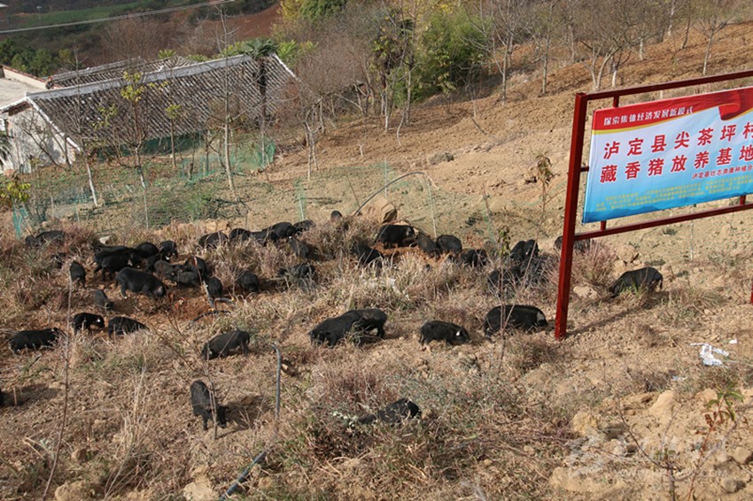 尖茶坪村藏香豬放養(yǎng)基地。