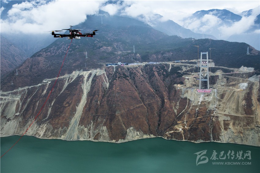雅康高速C15合同段一分部總工程師張磊說,河谷兩岸立好橋墩,施工隊(duì)員運(yùn)用無人機(jī)技術(shù),先把一根較細(xì)的繩子“飛穿”在兩側(cè)橋墩,再運(yùn)用這第一根繩索,運(yùn)送較粗繩索,最后運(yùn)送鋼繩,建立橫跨兩岸的1600多米長的“貓道”——施工隊(duì)員屆時(shí)彎腰在這里施工?!肮と藨以诤拥郎峡帐┕ぃ矔?huì)被無處不在的大風(fēng)所包圍?!?/span>