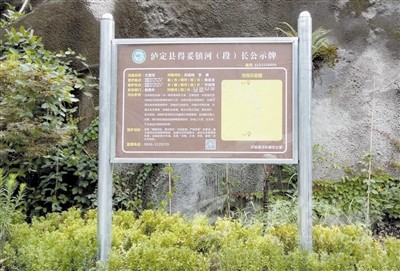 瀘定縣河(段)長制公示牌。