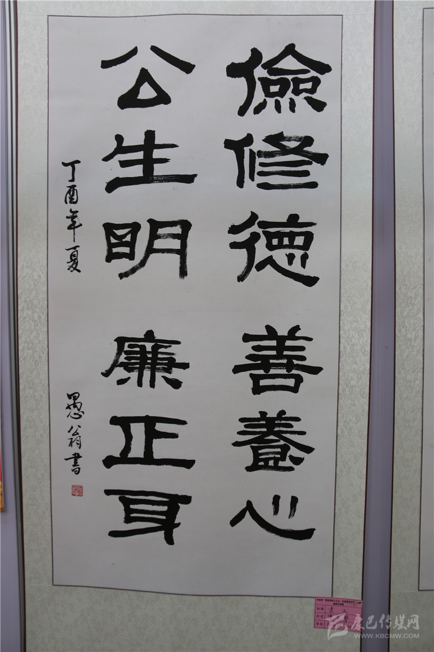 本網訊(記者 宋志勇 文/圖)“儉修德,善養(yǎng)心;公生明,廉正身?!薄爱敳蛔〗裉斓恼T惑將失去明天的幸福?!薄扒辶?/span>..........。隸書、行草、草書等一幅幅書法作品行云流水、飛揚灑脫。這是9月15日,由州紀委、州委宣傳部共同主辦,州直工委、州文明辦協(xié)辦的我州“喜迎黨的十九大?弘揚清風正氣”主題廉政書畫展在康定劇場開展時,參與此次活動的作者以各自的方式創(chuàng)作出一件件主題鮮明的精美力作,既增強全社會反腐倡廉意識,也營造各族人民喜迎黨的十九大的濃厚氛圍。
