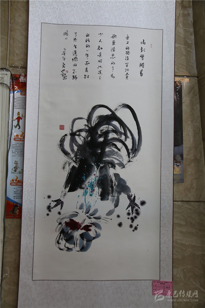 “‘松潔鶴鳴’是我親筆所繪,畫中‘松潔’表現的是黨員干部廉潔自律、風清氣正的一種政治生態(tài)環(huán)境;‘鶴鳴’表現的是警鐘長鳴,時時刻刻向黨員干部敲敲‘鐘’。”州老年大學書法班今年70歲的胡鄧珠指作書畫作品興奮地說。