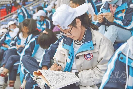 早上7點(diǎn)30分左右,記者來(lái)到這片特殊的學(xué)生方陣時(shí)發(fā)現(xiàn),不少學(xué)生把課本帶去了現(xiàn)場(chǎng),正趁著候場(chǎng)間隙埋頭苦讀。據(jù)康定中學(xué)老師李虓偉介紹,同學(xué)們是排練隊(duì)伍中進(jìn)場(chǎng)時(shí)間最晚、排練時(shí)間最短的一個(gè)團(tuán)隊(duì),“在不耽誤課程的情況下,孩子們將所有能抽出來(lái)的時(shí)間全部奉獻(xiàn)給這次演出了,所以每次排演總是格外地認(rèn)真,絲毫沒(méi)有怨言,為了節(jié)約時(shí)間,同學(xué)們還利用訓(xùn)練期間短暫的休息時(shí)間,埋頭溫習(xí)課本、做作業(yè)。”