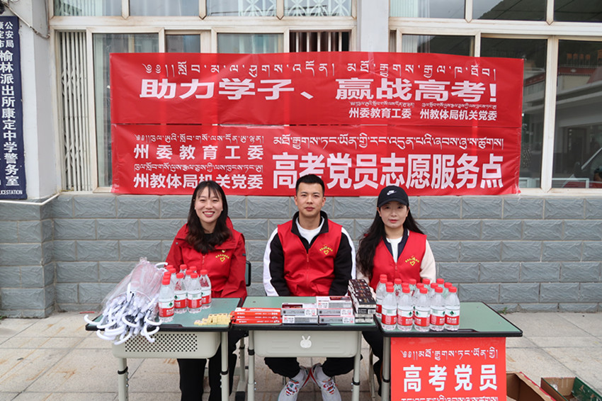 值得一提的是,除了公安交警部門的全程護(hù)航外,各職能部門對(duì)高考考生也傾注了許多關(guān)愛(ài)。記者在康定中學(xué)考點(diǎn)看到,州委教育工委、州教體局等部門還設(shè)立了高考黨員志愿服務(wù)點(diǎn),免費(fèi)為考生提供文具、雨具、礦泉水等。