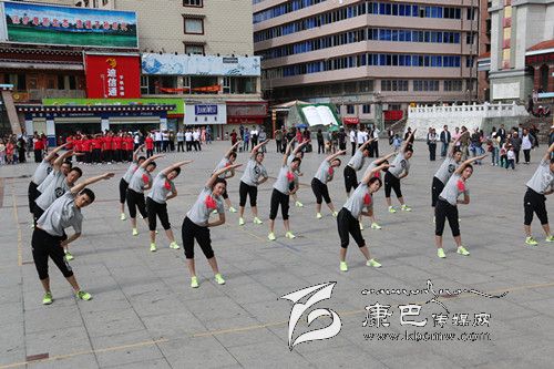 本網(wǎng)訊(記者 張濤 文/圖) 8月8日上午,以“全民健身促健康,同心共筑中國(guó)夢(mèng)”為主題的康定地區(qū)“體彩杯”全民健身日第九套廣播體操展示評(píng)比活動(dòng)在康定情歌廣場(chǎng)舉行。來自康定地區(qū)的州、縣6支代表隊(duì)100多名參賽隊(duì)員參加了評(píng)比,活動(dòng)展示了廣大干部職工積極向上、勇于進(jìn)取的精神風(fēng)貌。