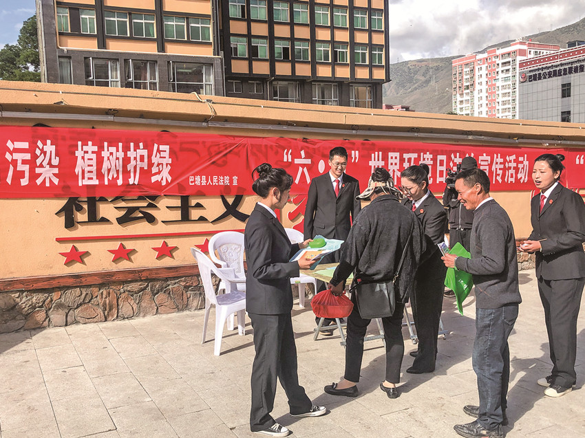 為進(jìn)一步增強(qiáng)群眾的生態(tài)環(huán)保意識,該院致力于講好環(huán)資故事,充分發(fā)揮扎根基層、貼近群眾的優(yōu)勢,大力開展群眾喜聞樂見的普法宣傳活動,筑牢巴塘生態(tài)環(huán)境保護(hù)的司法屏障。