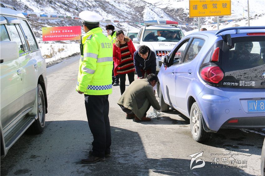 在現(xiàn)場(chǎng),記者看到有很多車(chē)從折多山通過(guò),結(jié)冰的路面使車(chē)輛打滑,不遵守交通規(guī)則的“魯莽司機(jī)”硬塞硬擠造成道路堵車(chē),給道路疏通工作帶來(lái)了很大的不便。“26日以后,天氣逐漸好轉(zhuǎn),白天日照后冰雪開(kāi)始融化,但是下午4點(diǎn)左右,溫度開(kāi)始下降,道路上的雪水又結(jié)成冰,車(chē)輛根本沒(méi)法前行。”據(jù)現(xiàn)場(chǎng)交警介紹,從29日開(kāi)始,折多山恢復(fù)了對(duì)大車(chē)的通行,造成車(chē)流量增大,車(chē)輛只能緩慢行駛,造成擁堵。加之大雪過(guò)后,路面結(jié)冰嚴(yán)重,上山的車(chē)輛大多沒(méi)有防滑鏈或者是到了結(jié)冰路段才停在路邊掛防滑鏈,造成車(chē)輛緩行擁堵。在行駛過(guò)程中,不少司機(jī)更是為能快速通行而違法超車(chē),以至折多山路段一度交通中斷。