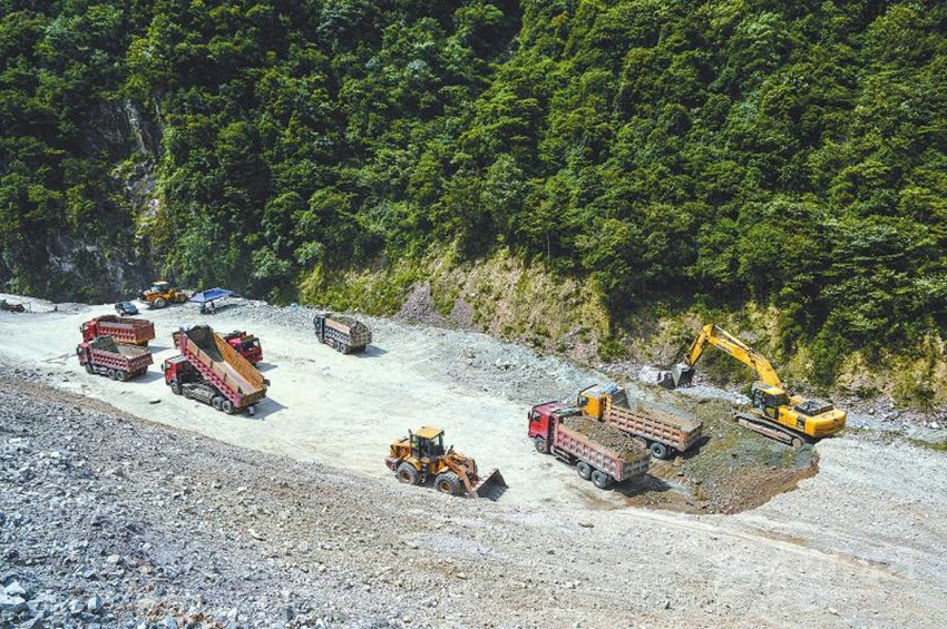 溯流而上,沿國(guó)道318線(xiàn)往西,在建的雅康高速不時(shí)映入眼簾,幾個(gè)巨型的渣土堆放體或覆蓋薄膜或已植草興綠,不時(shí)有裝載渣土的貨車(chē)迎面駛過(guò)。