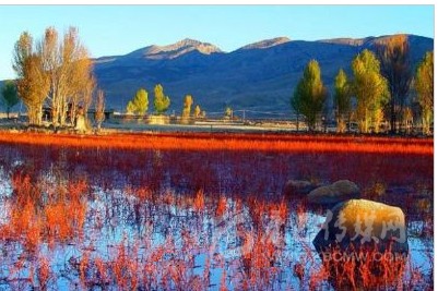 距稻城縣城金珠鎮(zhèn)28公里的桑堆小鎮(zhèn)風(fēng)景綺麗,在公路沿線的牧場開闊平展,河流平緩如鏡。遙望遠(yuǎn)處,在起伏的山巒間散落著村落、牧人、牛羊,呈現(xiàn)一派寧靜祥和的景象。公元1144年前,一世噶瑪巴·都松欽巴覺悟贊譽:“我走遍藏區(qū),來到此地。這里風(fēng)景秀美,牧草豐茂,六畜興旺,佛光普照。我愿在此修建寺廟成就功德”。金秋十月的桑堆紅草灘總是讓你感覺膠卷不夠用。